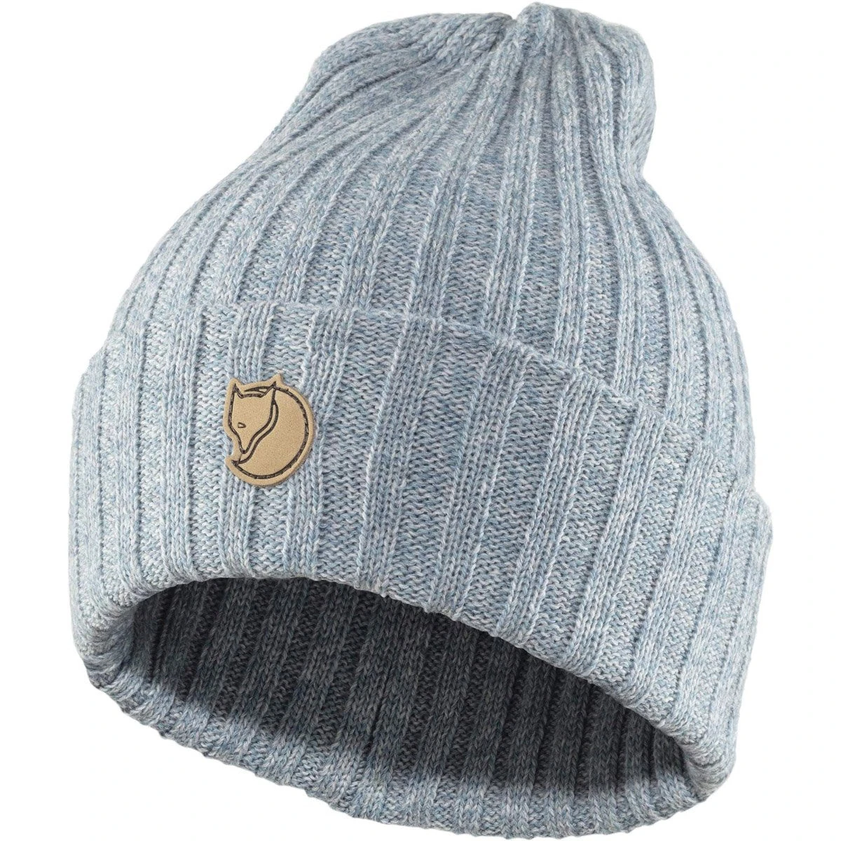 Double-knitted hat in wool that makes it both warm and durable. Double-fold at the bottom and ribbed for comfortable fit. Arctic fox on the forehead.