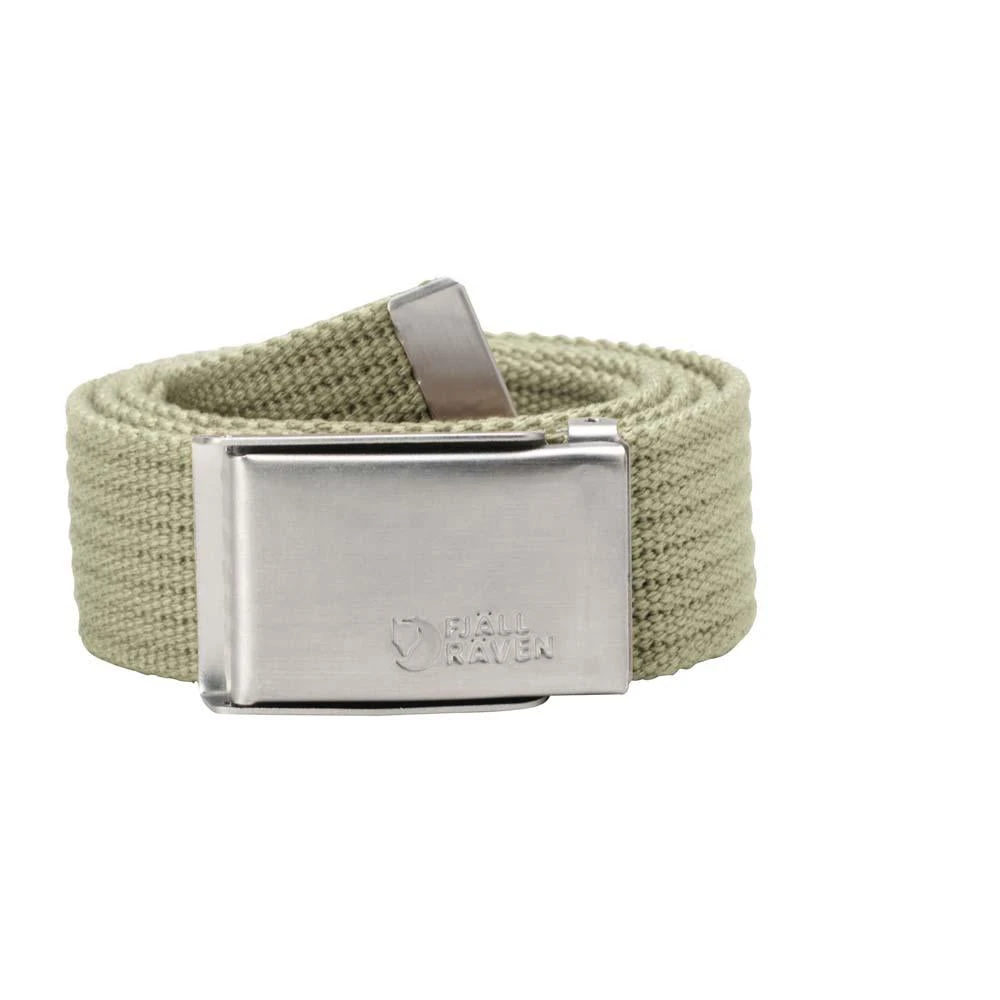 Canvas belt. Adjustable length and metal ‘military’ belt buckle.